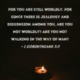 for you are still worldly. For since there is jealousy and dissension among you, are you not worldly? Are you not walking in the way of man?