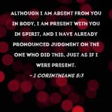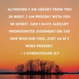 Although I am absent from you in body, I am present with you in spirit, and I have already pronounced judgment on the one who did this, just as if I were present.