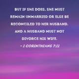 But if she does, she must remain unmarried or else be reconciled to her husband. And a husband must not divorce his wife.