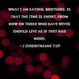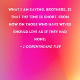 What I am saying, brothers, is that the time is short. From now on those who have wives should live as if they had none;