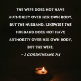 The wife does not have authority over her own body, but the husband. Likewise the husband does not have authority over his own body, but the wife.