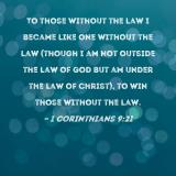 To those without the law I became like one without the law (though I am not outside the law of God but am under the law of Christ), to win those without the law.
