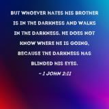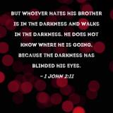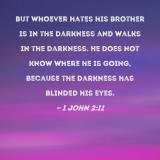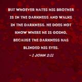 But whoever hates his brother is in the darkness and walks in the darkness. He does not know where he is going, because the darkness has blinded his eyes.