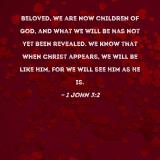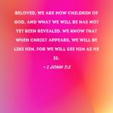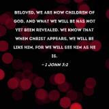 Beloved, we are now children of God, and what we will be has not yet been revealed. We know that when Christ appears, we will be like Him, for we will see Him as He is.