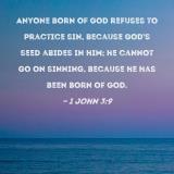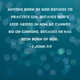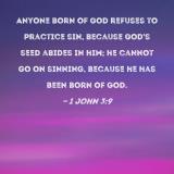 Anyone born of God refuses to practice sin, because God's seed abides in him; he cannot go on sinning, because he has been born of God.