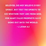 Beloved, do not believe every spirit, but test the spirits to see whether they are from God. For many false prophets have gone out into the world.