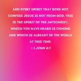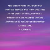 and every spirit that does not confess Jesus is not from God. This is the spirit of the antichrist, which you have heard is coming and which is already in the world at this time.