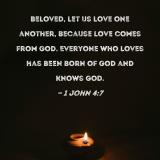 Beloved, let us love one another, because love comes from God. Everyone who loves has been born of God and knows God.