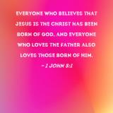 Everyone who believes that Jesus is the Christ has been born of God, and everyone who loves the Father also loves those born of Him.