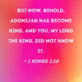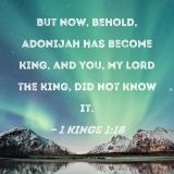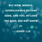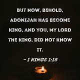 But now, behold, Adonijah has become king, and you, my lord the king, did not know it.