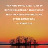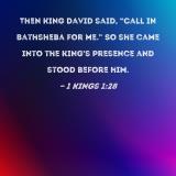 Then King David said, "Call in Bathsheba for me." So she came into the king's presence and stood before him.