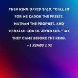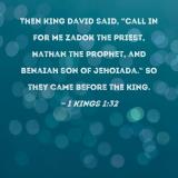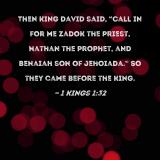Then King David said, "Call in for me Zadok the priest, Nathan the prophet, and Benaiah son of Jehoiada." So they came before the king.