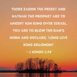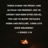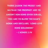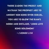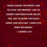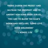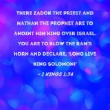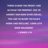 There Zadok the priest and Nathan the prophet are to anoint him king over Israel. You are to blow the ram's horn and declare, 'Long live King Solomon!'