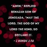 "Amen," replied Benaiah son of Jehoiada. "May the LORD, the God of my lord the king, so declare it.
