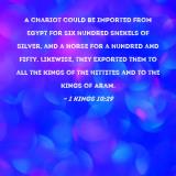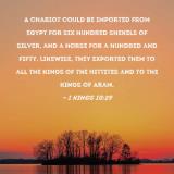A chariot could be imported from Egypt for six hundred shekels of silver, and a horse for a hundred and fifty. Likewise, they exported them to all the kings of the Hittites and to the kings of Aram.