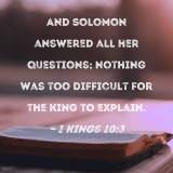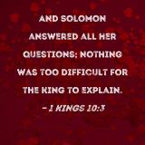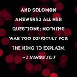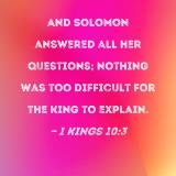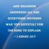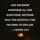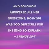 And Solomon answered all her questions; nothing was too difficult for the king to explain.