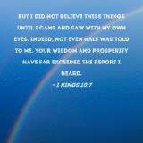 But I did not believe these things until I came and saw with my own eyes. Indeed, not even half was told to me. Your wisdom and prosperity have far exceeded the report I heard.