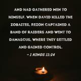 and had gathered men to himself. When David killed the Zobaites, Rezon captained a band of raiders and went to Damascus, where they settled and gained control.