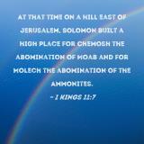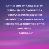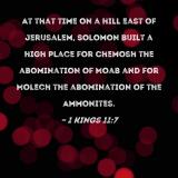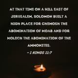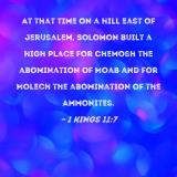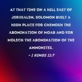 At that time on a hill east of Jerusalem, Solomon built a high place for Chemosh the abomination of Moab and for Molech the abomination of the Ammonites.