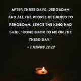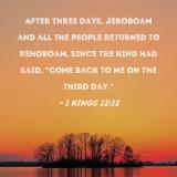 After three days, Jeroboam and all the people returned to Rehoboam, since the king had said, "Come back to me on the third day."