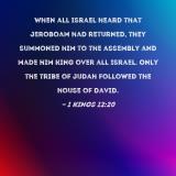 When all Israel heard that Jeroboam had returned, they summoned him to the assembly and made him king over all Israel. Only the tribe of Judah followed the house of David.