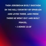 Then Jeroboam built Shechem in the hill country of Ephraim and lived there. And from there he went out and built Penuel.