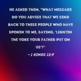 He asked them, "What message do you advise that we send back to these people who have spoken to me, saying, 'Lighten the yoke your father put on us'?"