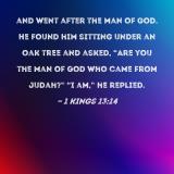 and went after the man of God. He found him sitting under an oak tree and asked, "Are you the man of God who came from Judah?" "I am," he replied.