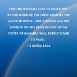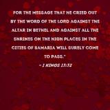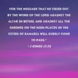 for the message that he cried out by the word of the LORD against the altar in Bethel and against all the shrines on the high places in the cities of Samaria will surely come to pass."