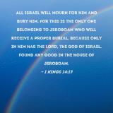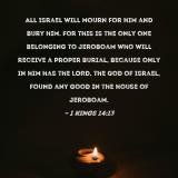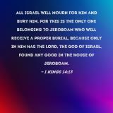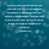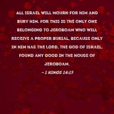 All Israel will mourn for him and bury him. For this is the only one belonging to Jeroboam who will receive a proper burial, because only in him has the LORD, the God of Israel, found any good in the house of Jeroboam.