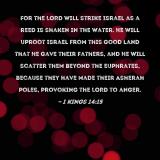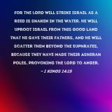 Pictures and Artwork For the LORD will strike Israel as a reed is shaken in the water. He will uproot Israel from this good land that He gave their fathers, and He will scatter them beyond the Euphrates, because they have made their Asherah poles, provoking the LORD to anger. |