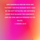 And Rehoboam rested with his fathers and was buried with them in the City of David; his mother's name was Naamah the Ammonite. And his son Abijam reigned in his place.