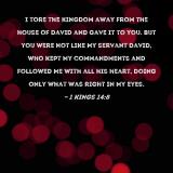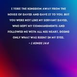 I tore the kingdom away from the house of David and gave it to you. But you were not like My servant David, who kept My commandments and followed Me with all his heart, doing only what was right in My eyes.