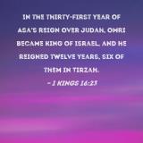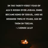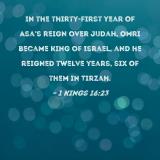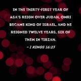 In the thirty-first year of Asa's reign over Judah, Omri became king of Israel, and he reigned twelve years, six of them in Tirzah.