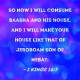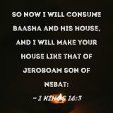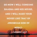 So now I will consume Baasha and his house, and I will make your house like that of Jeroboam son of Nebat: