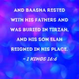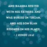 And Baasha rested with his fathers and was buried in Tirzah, and his son Elah reigned in his place.
