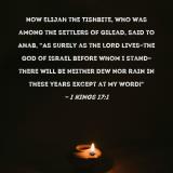 Now Elijah the Tishbite, who was among the settlers of Gilead, said to Ahab, "As surely as the LORD lives--the God of Israel before whom I stand--there will be neither dew nor rain in these years except at my word!"