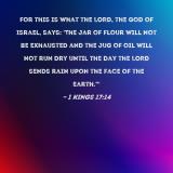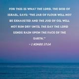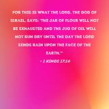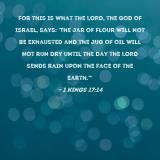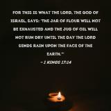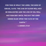 for this is what the LORD, the God of Israel, says: 'The jar of flour will not be exhausted and the jug of oil will not run dry until the day the LORD sends rain upon the face of the earth.'"