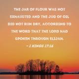 The jar of flour was not exhausted and the jug of oil did not run dry, according to the word that the LORD had spoken through Elijah.