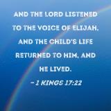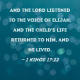 And the LORD listened to the voice of Elijah, and the child's life returned to him, and he lived.