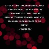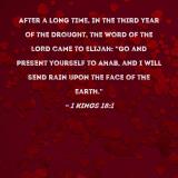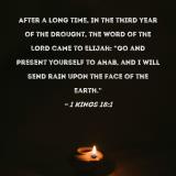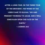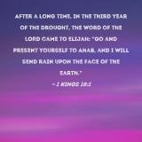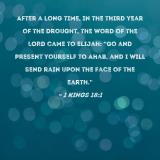 After a long time, in the third year of the drought, the word of the LORD came to Elijah: "Go and present yourself to Ahab, and I will send rain upon the face of the earth."