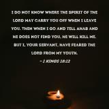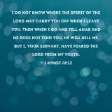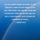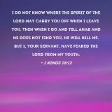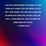 I do not know where the Spirit of the LORD may carry you off when I leave you. Then when I go and tell Ahab and he does not find you, he will kill me. But I, your servant, have feared the LORD from my youth.