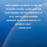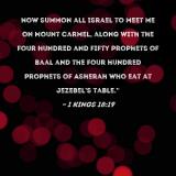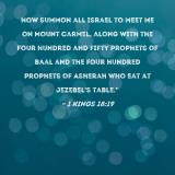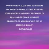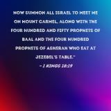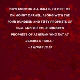 Now summon all Israel to meet me on Mount Carmel, along with the four hundred and fifty prophets of Baal and the four hundred prophets of Asherah who eat at Jezebel's table."