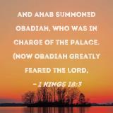 and Ahab summoned Obadiah, who was in charge of the palace. (Now Obadiah greatly feared the LORD,