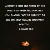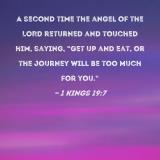 A second time the angel of the LORD returned and touched him, saying, "Get up and eat, or the journey will be too much for you."