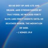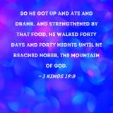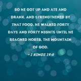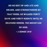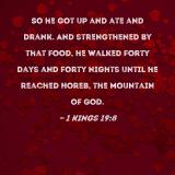 So he got up and ate and drank. And strengthened by that food, he walked forty days and forty nights until he reached Horeb, the mountain of God.