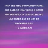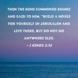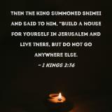 Then the king summoned Shimei and said to him, "Build a house for yourself in Jerusalem and live there, but do not go anywhere else.