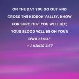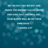 On the day you go out and cross the Kidron Valley, know for sure that you will die; your blood will be on your own head."