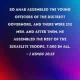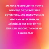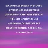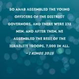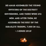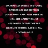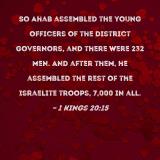 So Ahab assembled the young officers of the district governors, and there were 232 men. And after them, he assembled the rest of the Israelite troops, 7,000 in all.