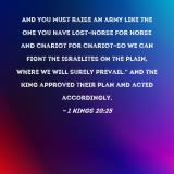 And you must raise an army like the one you have lost--horse for horse and chariot for chariot--so we can fight the Israelites on the plain, where we will surely prevail." And the king approved their plan and acted accordingly.